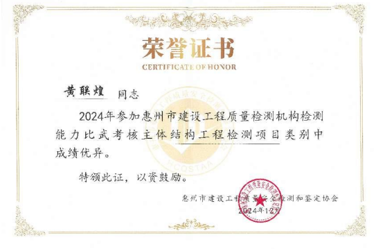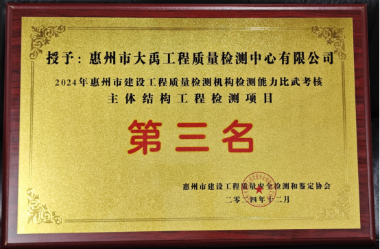 大禹檢測公司勇奪2024年惠州市主體結構工程檢測比武團體季軍