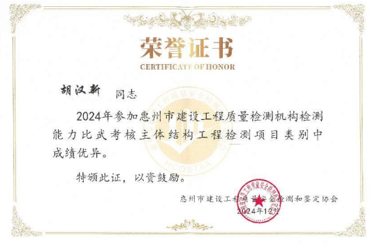 在惠州市建設工程質(zhì)量檢測機構檢測能力比武考核中,大禹檢測公司隊伍憑借精湛的專(zhuān)業(yè)技術(shù)和過(guò)硬的實(shí)戰能力,一舉斬獲主體結構工程檢測項目團體季軍殊榮,展現了大禹檢測團隊的卓越能力與水平。
