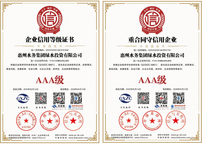 同期,綠水公司順利通過(guò)國信中誠(北京)認證機構的嚴格評審,成功榮獲AAA級信用企業(yè)、AAA級企業(yè)資信等級等10項權威認證。這一系列榮譽(yù)的獲得,標志著(zhù)綠水公司在誠信經(jīng)營(yíng)、社會(huì )責任及綜合競爭力方面獲得充分認可。