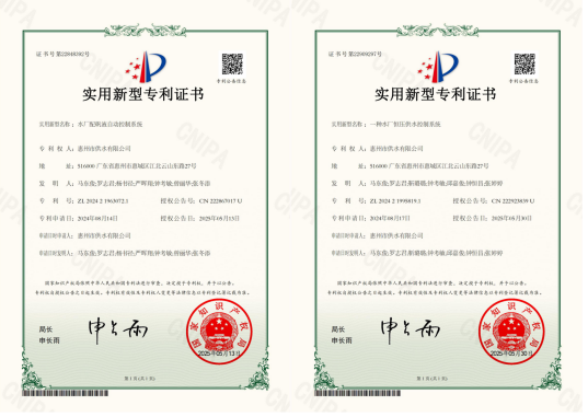 惠州水務(wù)集團供水公司一舉斬獲兩項國家實(shí)用新型專(zhuān)利