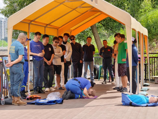 藍天救援隊結合近期發(fā)生的溺水和救援案例,現場(chǎng)拆解“黃金四分鐘”,他們帶領(lǐng)景區和經(jīng)營(yíng)業(yè)態(tài)工作人員分組練習,從清理呼吸道、開(kāi)放氣道到精準按壓,逐一糾正手勢偏差。全域覆蓋從“專(zhuān)業(yè)隊”到“全員兵”的安全共識。接著(zhù),槳板運動(dòng)協(xié)會(huì )與藍天救援隊分別對槳板救援、繩包救援、徒手救援等進(jìn)行了系統化的培訓,景區內各業(yè)態(tài)的工作人員也積極地參與了救援實(shí)踐的學(xué)習。