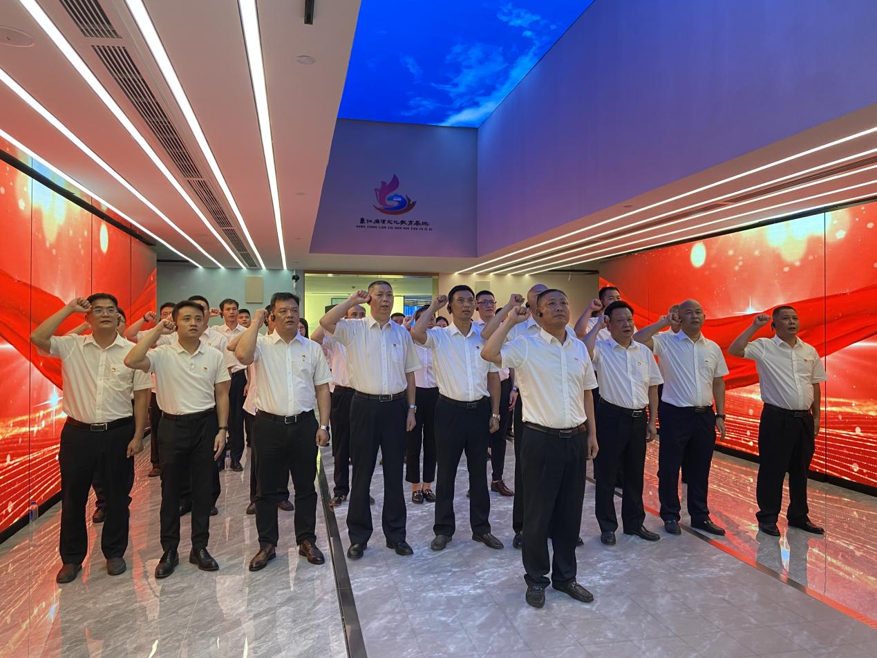 在“廉潔之道”展廳,全體黨員干部在公司黨支部書(shū)記楊寶堂的帶領(lǐng)下,面向黨旗、高舉右拳、莊嚴地重溫了入黨誓詞,進(jìn)一步堅定了初心使命。