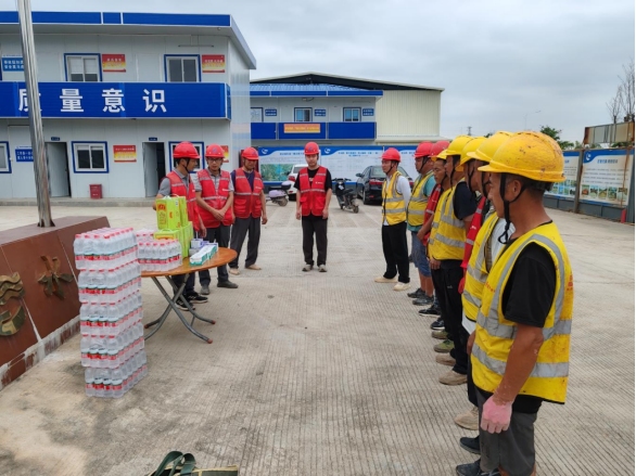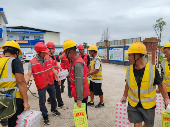 為切實(shí)做好防暑降溫工作,保障一線(xiàn)建設者的健康安全,5月28日上午,由市水電公司承建的宏達路(惠大高速至一號公路段)工程(一期)臨時(shí)黨支部聯(lián)合項目部,在施工現場(chǎng)開(kāi)展“夏日送清涼”慰問(wèn)活動(dòng),為奮戰在高溫下的工人們送去黨組織的關(guān)懷與夏日的清涼。
